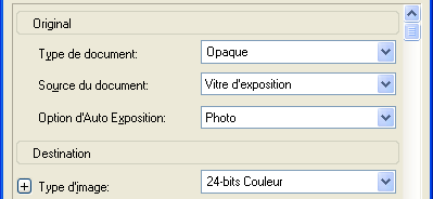 Spécifiez les paramètres Original et Type d'image correspondant à vos images.