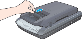 ![]() | Relâchez le bac de sortie et déplacez ensuite le guide de manière à ce qu'il entre en contact avec le bord de vos documents. |