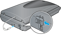 Avant de mettre le scanner sous tension, vérifiez que le verrou de transport est en position déverrouillée et que le scanner est connecté à votre ordinateur. De plus, vérifiez que le câble du capot est connecté.