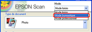 Lancez EPSON Scan et sélectionnez le Mode bureautique. Pour plus de détails sur la sélection du mode de numérisation, reportez-vous à la section Modification du mode de numérisation.