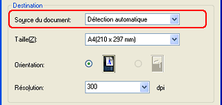 Dans la fenêtre principale de EPSON Scan, vérifiez que l'option Détection automatique est sélectionnée dans la liste Source du document.