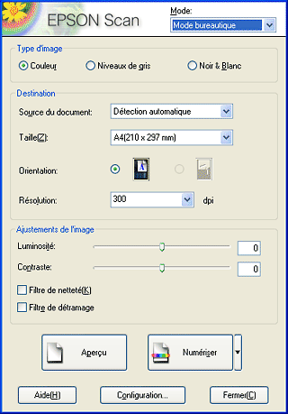 Pour effectuer les réglages appropriés à la numérisation de documents en Mode bureautique, procédez comme suit.