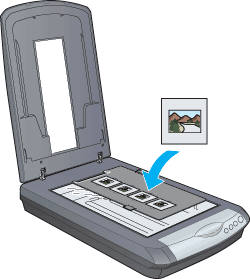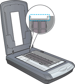 Chargez le transparent dans le support de films et positionnez-le sur la vitre d'exposition. Reportez-vous à la section répertoriée ci-dessous correspondant au type de transparent que vous souhaitez numériser.