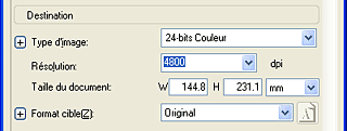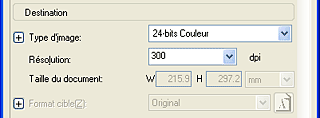 ![]() | Indiquez les paramètres Destination correspondant au fichier image résultant souhaité. |