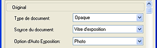Sélectionnez " Photo " ou " Document " dans la liste Type d'exposition automatique. |
