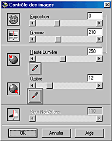 ![]() | Dans la boîte de dialogue Contrôle des images, cliquez sur le bouton compte-gouttes situé en dessous de l'option Ombre. |