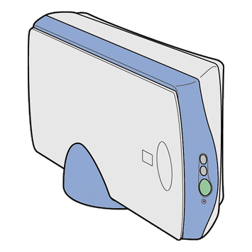 ![]() | Mettez le scanner sous tension et attendez que le chariot se place à sa position de repos (près des charnières du capot). La lampe du chariot étant allumée, débranchez le cordon d'alimentation. |