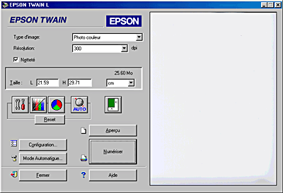 Avant de numériser et d'enregistrer une image, vous pouvez en afficher un aperçu dans la fenêtre Aperçu, située à droite de la fenêtre du mode Manuel. Utilisez la fonction Aperçu pour visualiser le résultat des paramètres que vous avez définis.