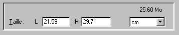 La largeur et la hauteur d'une image sont indiquées dans l'unité de mesure sélectionnée. Vous pouvez entrer de nouvelles valeurs directement dans les champs réservés à cet effet ou modifier les dimensions de l'image dans la fenêtre Aperçu en créant une zone de cadrage. Pour cela, effectuez un cliquer-glisser avec la souris sur la zone désirée. Reportez-vous à la section Aperçu des images pour avoir plus d'informations sur les zones de cadrage.