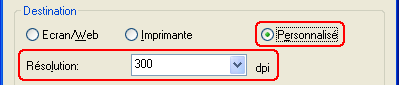 Augmentez le paramètre Résolution de manière conforme à l'augmentation appliquée au niveau de la taille de l'image après numérisation