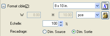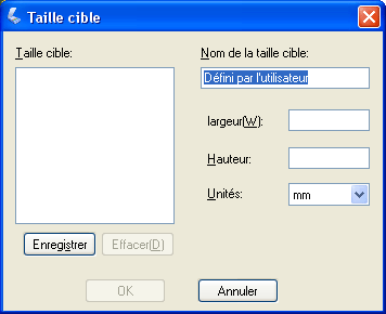 Si vous souhaitez utiliser une taille de numérisation qui ne figure pas dans la liste Format cible, vous pouvez créer une taille personnalisée. Cliquez sur la flèche de la liste et sélectionnez Personnalisée. La fenêtre Format cible apparaît.