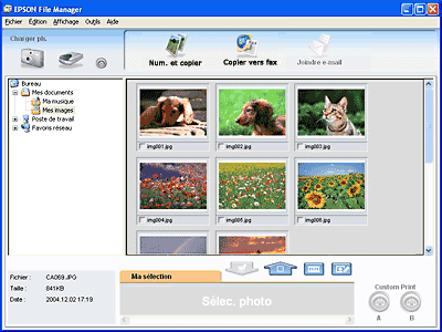 Si les images numérisées ne s'affichent pas, sélectionnez le dossier dans lequel vous les avez enregistrées sur le côté gauche de la fenêtre de EPSON File Manager.