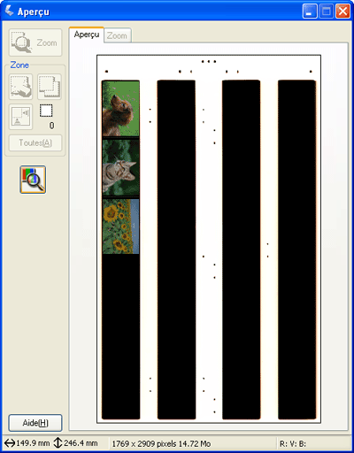 EPSON Scan procède à la prénumérisation des images et les affiche dans une des fenêtres d'aperçu suivantes :