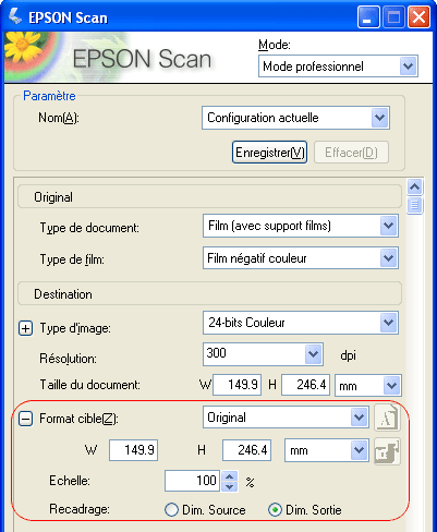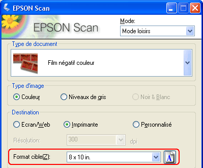 Pour plus d'informations au sujet de l'utilisation des outils Format cible, cliquez sur Aide dans la fenêtre de EPSON Scan.