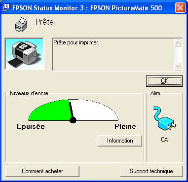 Lance EPSON Status Monitor qui affiche les niveaux d'encre. |