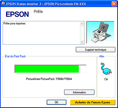 EPSON Status Monitor 3 affiche de manière graphique l'état du PicturePack.