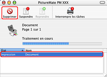 Cliquez sur le bouton Supprimer pour annuler le travail d'impression.