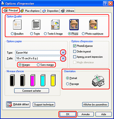 Cliquez sur OK pour fermer la fenêtre des paramètres de l'imprimante.