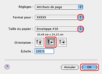 Dans les options de paramètres Taille, sélectionnez la taille d'enveloppe appropriée. Vous pouvez aussi définir une taille personnalisée. Pour plus de détails, reportez-vous à l’aide en ligne.