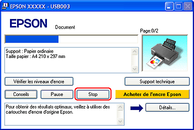 Cliquez sur le bouton Stop pour annuler l’impression.