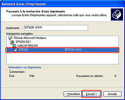 Pour surveiller l'état d'une imprimante partagée, vous devez installer EPSON Status Monitor 3 sur chaque ordinateur. EPSON Status Monitor 3 s'installe automatiquement lors de l'installation du logiciel d'impression.