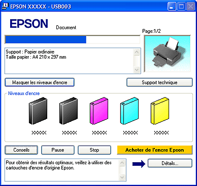 Les niveaux d'encre indiqués dans EPSON Status Monitor sont seulement approximatifs.