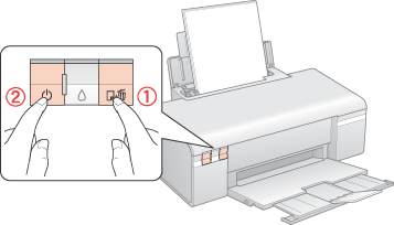 Maintenez la touche Papier enfoncée et appuyez sur la touche d'alimentation pour mettre l'imprimante sous tension.