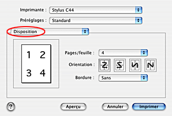 Pour plus de détails, reportez-vous à la section Impression Pages par feuille.