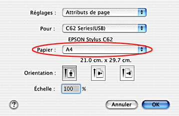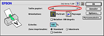 Sélectionnez A4 comme valeur du réglage Taille papier. Ensuite, cliquez sur OK pour fermer le dialogue.
