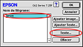 Sous Macintosh, cochez la case Filigrane du dialogue Disposition, et sélectionnez le filigrane souhaité dans la liste.