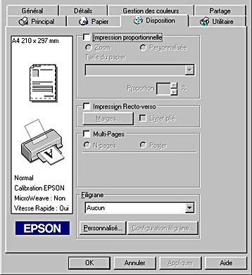 Les modèles EPSON Stylus C80/C70 prennent en charge l'impression recto-verso. Il existe deux types d'impression recto-verso. L'impression recto-verso standard vous permet d'imprimer les pages de numéro impair en premier. Une fois ces pages imprimées, elles peuvent être rechargées afin d'imprimer les pages de numéro pair sur l'autre face du papier. L'impression recto-verso des livrets pliés vous permet d'obtenir des livrets à simple pli. Pour plus de détails sur la réalisation de livrets à simple pli et sur l'impression recto-verso, reportez-vous à la section Définition des paramètres du menu Disposition pour Windows ou à la section Définition des paramètres de la zone de dialogue Format d'impression pour Macintosh.
