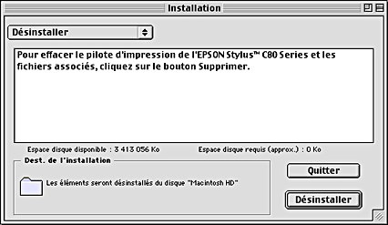 Mettez votre Macintosh sous tension et insérez le CD-ROM du logiciel dans le lecteur. Le logiciel d'impression EPSON se lance automatiquement.