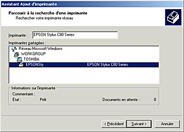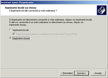 Cliquez sur Imprimante réseau, puis cliquez sur Suivant.