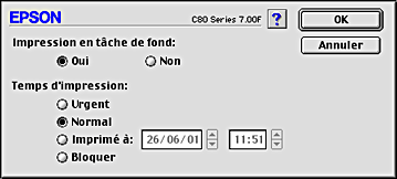 ![]() | Sélectionnez l'option Urgent, Normal, Imprimer à, ou Bloquer pour l'Heure d'impression. |