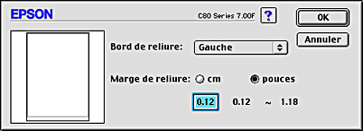 En fonction de votre application, la marge de reliure réelle peut différer des valeurs spécifiées. Essayez avec quelques feuilles pour examiner le résultat avant d'imprimer de gros volumes.