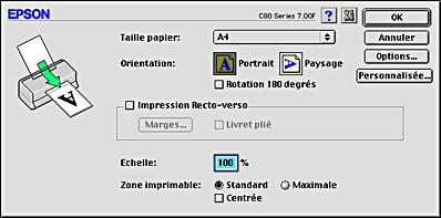 Sélectionnez Format d'impression dans le menu Fichier de votre application. La zone de dialogue Format d'impression s'affiche.