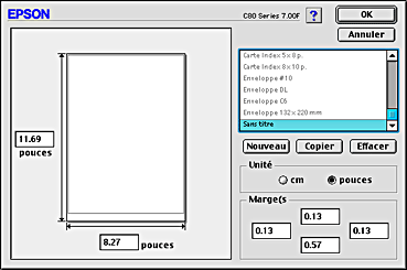 Choisissez le format de papier que voulez utiliser. Si vous voulez définir une taille de papier personnalisée, reportez-vous à la section Définition d'un format de papier personnalisé.