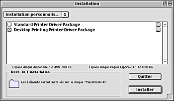 Choisissez Intallation personnalisée et cochez la case ///Desktop Printing Printer Driver Package.