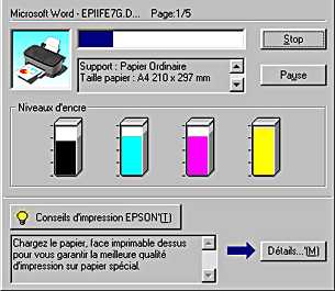 Quand vous envoyez un travail d'impression à l'imprimante, la barre de progression s'affiche sur votre écran.
