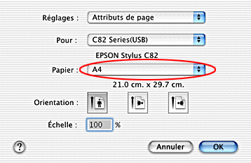 Sélectionnez A4 pour le paramètre Papier. Ensuite, cliquez sur OK pour fermer la zone de dialogue.