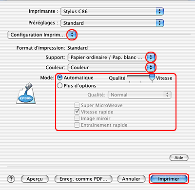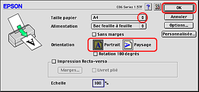 Réglez le paramètre Pour. Pour imprimer avec des marges standard, sélectionnez Stylus C86.