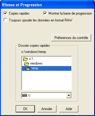 Utilisation de la boîte de dialogue Vitesse et Progression (Windows seulement)