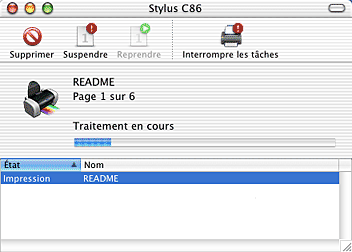 Après le lancement d'une impression, le bouton EPSON Stylus C86 apparaît dans la barre système. Cliquez sur ce bouton pour ouvrir l'utilitaire EPSON Spool Manager.
