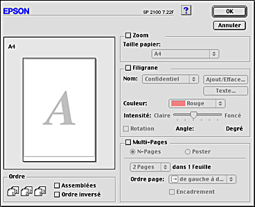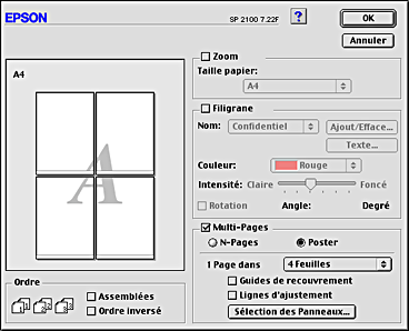 Permet d'imprimer 2 ou 4 pages de votre document sur la même feuille de papier. |