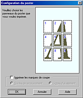 Si vous ne souhaitez imprimer que certaines parties du poster et non sa totalité, cliquez sur les parties que vous ne souhaitez pas imprimer puis sur OK pour fermer la boîte de dialogue Configuration du poster.