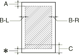 Vous pouvez ramener la marge inférieure minimale à 3 mm en sélectionnant Maximale comme option de Zone imprimable dans le menu Papier du logiciel d'impression (Windows) ou dans la zone de dialogue Format d'impression (Macintosh). Toutefois, la qualité peut décliner dans la zone imprimée gagnée sur la marge inférieure. Avant d'imprimer des documents volumineux en utilisant cette option, imprimez une page pour vérifier la qualité. |