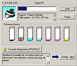 Il est possible d'annuler l'impression en utilisant la barre de progression ou EPSON Spool Manager. Reportez-vous à la section appropriée ci-après.