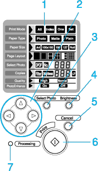 4. Panneau de contrôle, partie supérieure permet d'effectuer les réglages relatifs à une impression directe à partir de la carte PC.