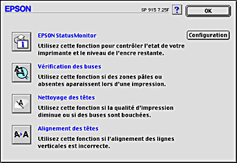 Les utilitaires d'impression EPSON vous permettent de contrôler l'état actuel de l'imprimante et d'effectuer des opérations de maintenance de l'imprimante à partir de votre ordinateur.