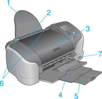 5. Extension du plateau de sortie : soutient le papier éjecté.